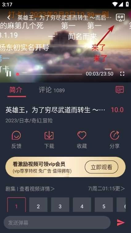 3、在播放页面我们还可以选择投屏的功能,点击右上角的投屏就行。