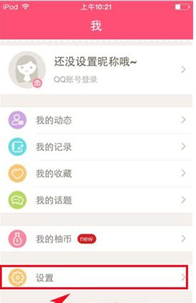 1. 打开美柚,轻点【我】,接着轻点【设置】,随后轻点【选择提醒铃声】进入。