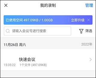 若您在会议期间使用了录制、文档、聊天等功能,在主页的会议列表中打开会议详情页,同样能够查看相应沉淀下来的内容。