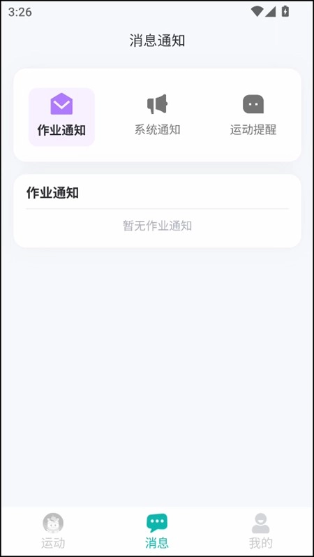 3、处于消息界面时,我们可以查看各类作业通知、系统通知以及运动提醒。