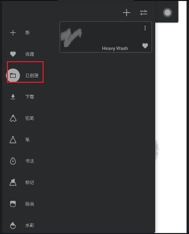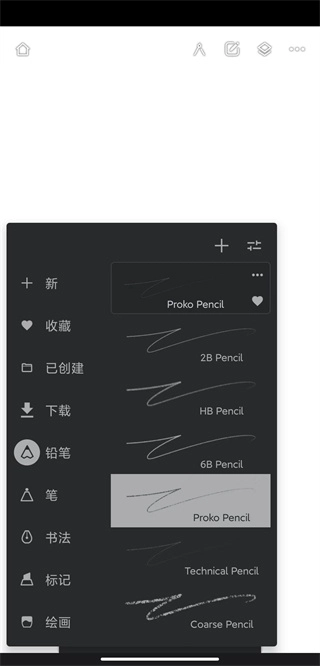 3、在该页面挑选一支画笔,接着点击黑色区域右上角“+”号附近的位置,便能进入画笔详细数据的设置。