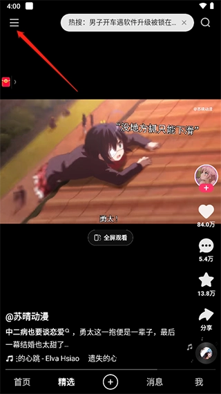 1.打开快手轻量版App,登录后找到左上角的【三】点击