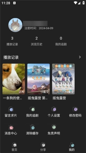 4、在我的页面,还可以看到播放的记录,自动为你保存播放的进度。