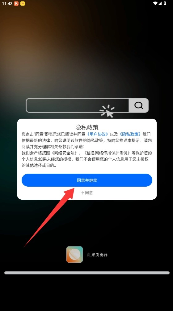 1. 当首次启动应用,在阅读完用户协议后,点击“同意并继续”按钮,就能进入主界面。