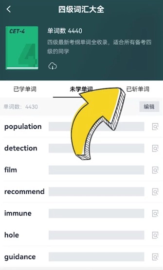 只需依次点击【已斩单词】,接着点击【编辑】,最后点击恢复单词的图标即可。