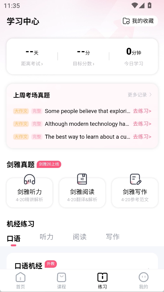 3、练习界面能进行写作、口语、阅读等方面的练习