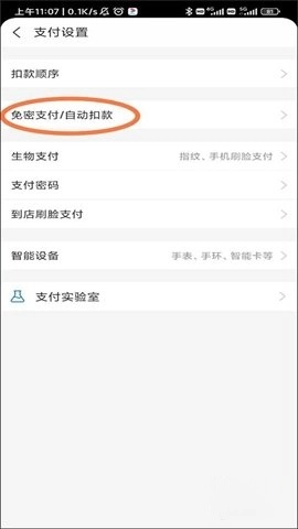 2. 进入支付设置页面,在其中找到“免密支付/自动扣款”这一选项,然后点击它。