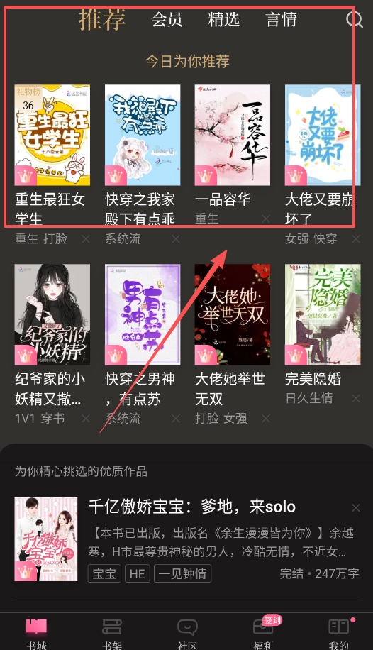 2. 想要高效找书,可以从“推荐”页面入手。系统所推荐的书籍都带有关键词标签,这能极大地提高你找书的效率。