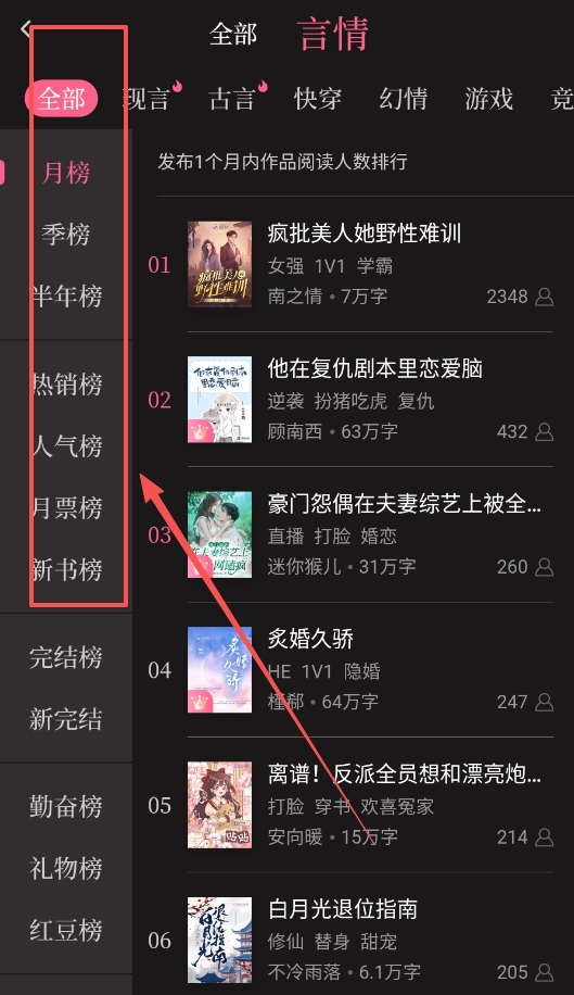 3、“书城”设有月榜、季榜、半年榜等各类榜单,借助这些分类榜单,你能迅速掌握不同时间维度下的流行趋势。