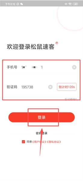 3、输入手机号与验证码并勾选协议,完成平台登录。