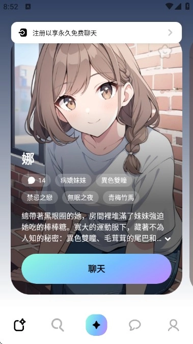 若你对某个角色感兴趣,点击即可进入详情页面,深入了解其背景故事。另外,点击【开始聊天】,就能开启专属对话。