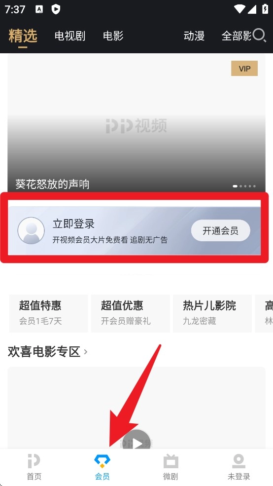 1. 点击底部会员按钮可进入会员专区,登录帐号后可选择开通黄金用户享受服务。