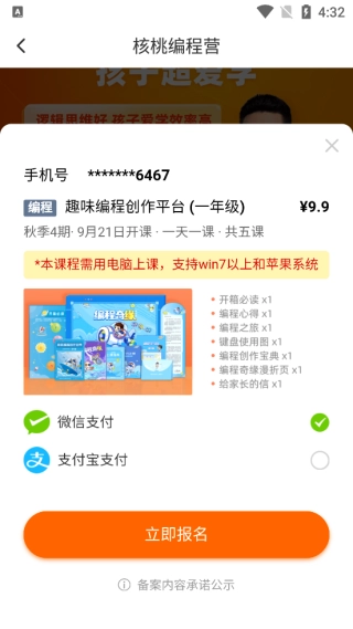 1、进入核桃编程家长端,点击下方的项目板块,再点击中间的了解课程