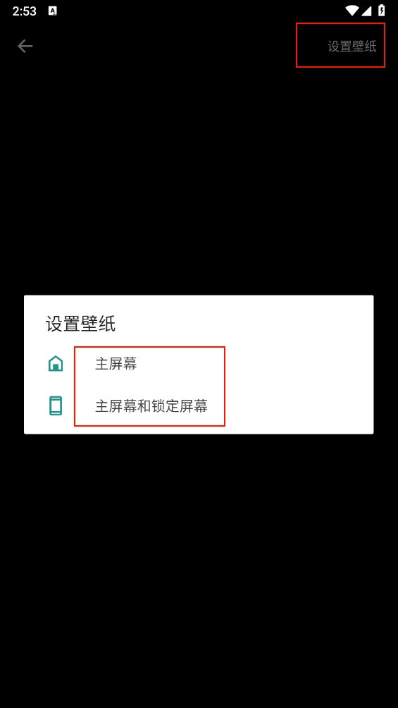 4最后,点击界面右上角的“设置壁纸”选项,接着挑选想要应用该壁纸的屏幕就完成了。