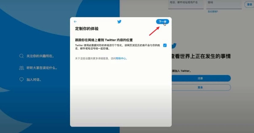 1首先访问推特官网,接着点击页面右上角的账号注册入口。