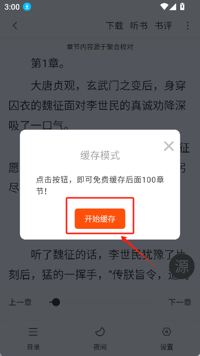 2.然后在弹出的缓存模式窗口中点击开始缓存。