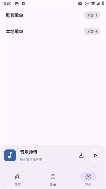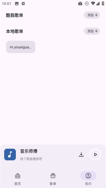 2、然后点击右下角的“我的”,再点击“+”号来添加本地歌单。