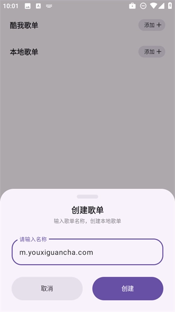 3、然后自定义输入歌单名称,点击“创建”。