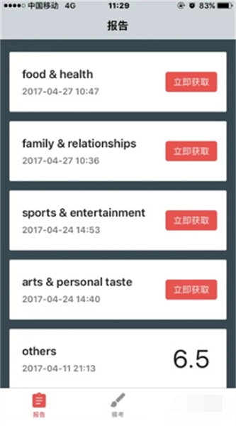3、考试结束后直接退出,你的录音会保存在本地,可以在首页“报告”这个选项中看到。