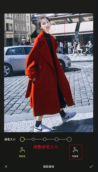 4、点击瘦脸瘦身功能,推动脸颊即可瘦脸,如下图所示;
