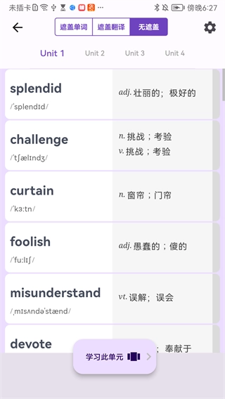 1、软件提供的学习单词均为高频、核心词汇,帮助学生高效提升学习效率。
