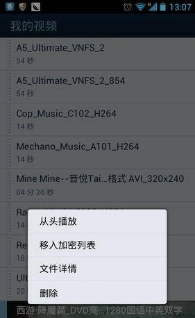 然后点击查看加密列表,输入刚刚设置的密码即可查看加密文件里面的视频了!