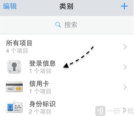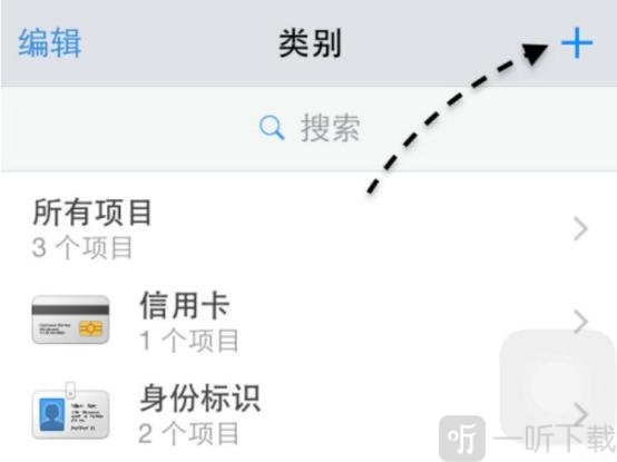 6打开1password应用后,找到“类别”界面,接着点击该界面右上角的“+”图标。