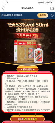 2在当前页面,你可以查看预约抢购相关的规则说明,包括参与资格要求和购买数量限制等内容,之后选择你想要参与抢购的酒类品种。