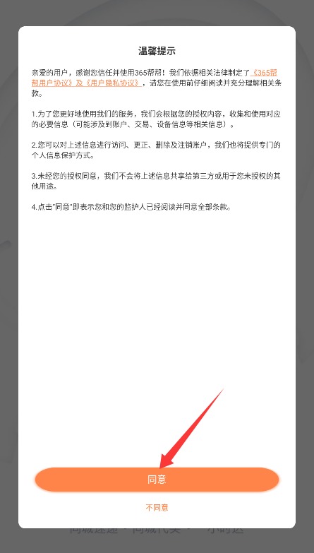 1、应用首次启动时,需阅读并确认用户协议及隐私条款,点击同意后即可进入账号注册页面。
