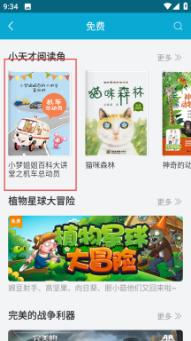 3在免费内容页面里,找到并点击小梦姐姐百科大讲堂系列中的机车总动员这一节目。