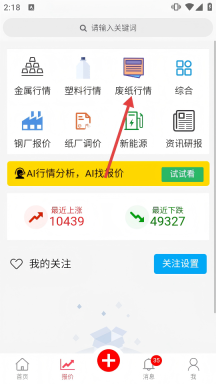 2、在报价页面点击【废纸行情】选项,随后进入报价类别选择界面。