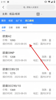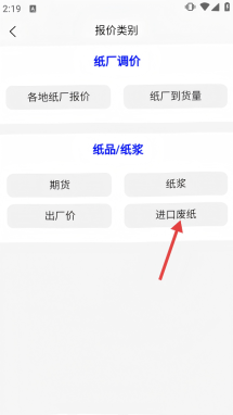 3在报价类别界面,点击“进口废纸”选项,即可跳转至进口废纸报价列表页面。