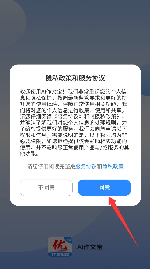1、初次使用时,请仔细阅读用户协议与隐私条款,确认内容无误后,点击同意并继续,即可进入主界面。