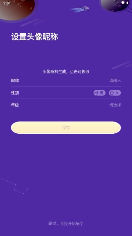 2、此处以手机号码注册为例,注册完成后,用户需设置头像、昵称、性别、年级等信息方可进入。