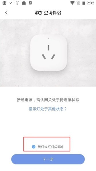 4、根据设备说明书的指引,把设备调整到待连接状态,同时确认勾选相应的状态选项。点击“下一步”后,要保证设备与网关处于相同的网络环境中。