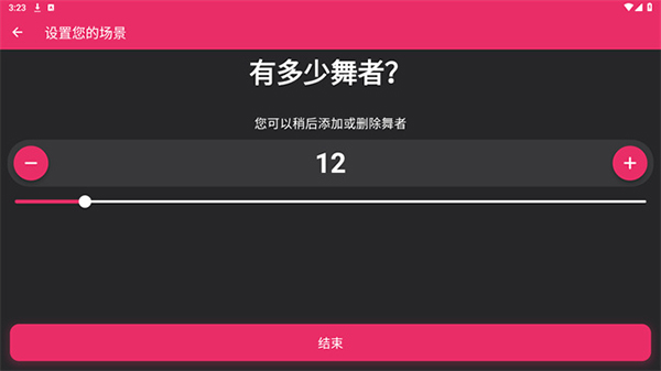4. 待参与人数确认无误后,点击“结束”按钮,即可进入详细的舞蹈编排界面。