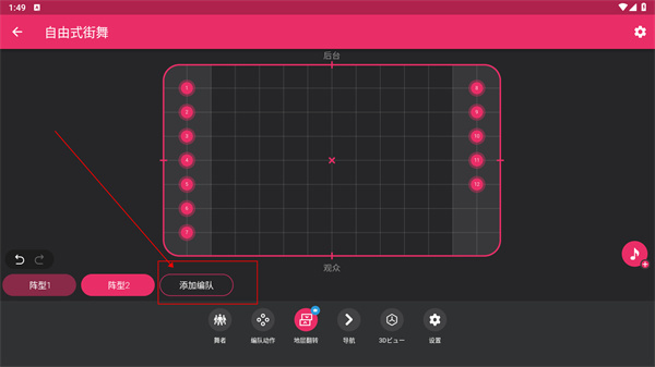 4. 点击添加编队的选项,利用系统工具进行自由创作,就能自动生成舞蹈队形。