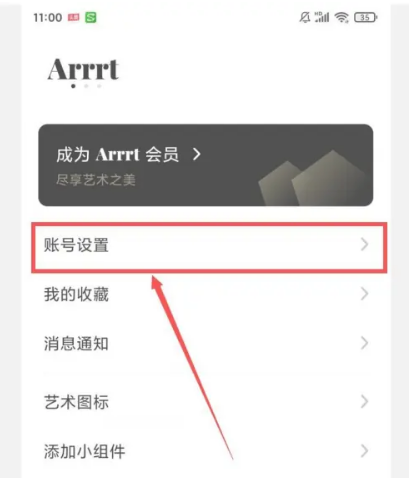 1、打开Arrrt进入首页后,先点击页面右上角的“账号设置”入口。
