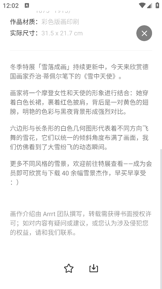 4、画作与专题内容会持续更新,确保用户每次打开Arrrt随身艺术馆,都能邂逅不同的艺术之美。