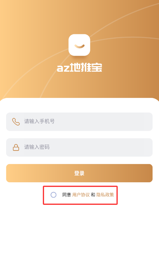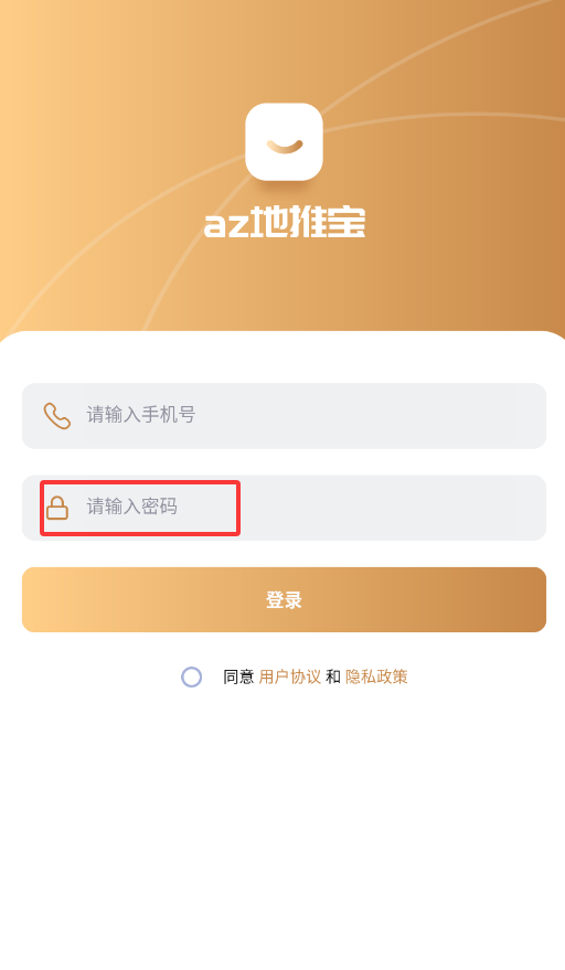 1打开az地推宝应用后,在登录页面填写注册阶段关联的手机号码。