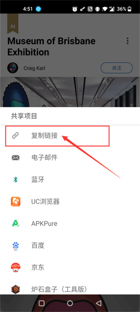 4、然后再点击下拉项目中的“复制链接”;