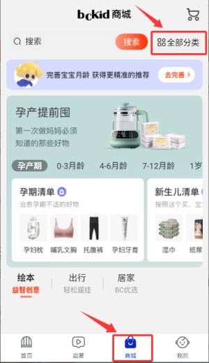3找到页面下方的商城入口并点击,进入商城页面后,通过全部分类选项来查看各类商品。