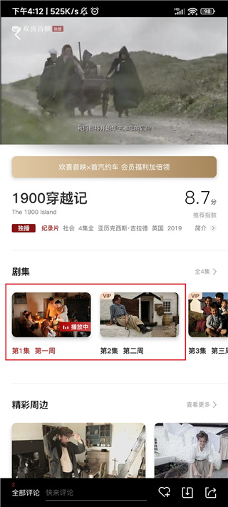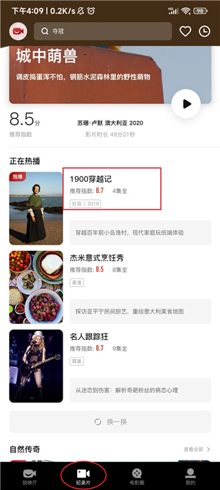 5找到主页下方的“纪录片”板块,接着从中挑选一部纪录片,比如《1900穿越记》。