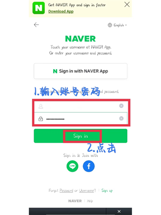 1、打开软件的登录界面,该软件支持多种登录方式,接下来我将以Naver为例进行演示