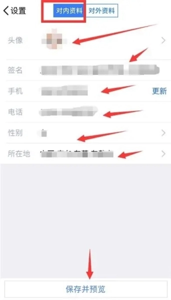3.选择对内资料/对外资料,编辑好以后,点击保存并预览即可。