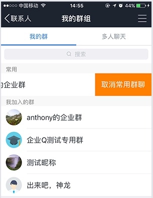 可以查看本企业本套企点号的组织架构和同事的资料卡,如下图所示: