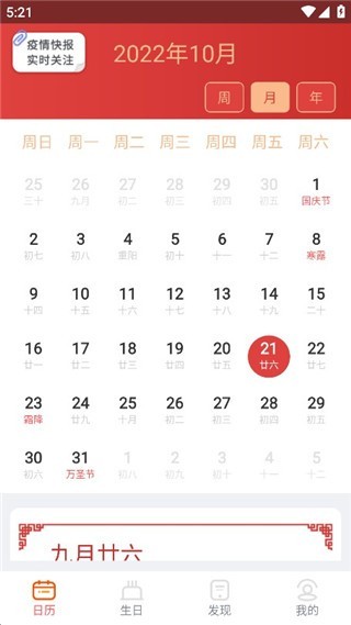 2可自由切换周、月、年三种时间维度的日历视图,传统节日与二十四节气清晰呈现,是陪伴在侧的实用时间管理小帮手。