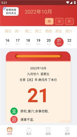 2、老黄历相关内容:每日的吉凶宜忌、节气时令、天干地支等信息,助你了解传统历法文化