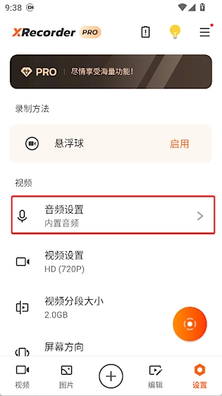 3、选择音频就能录内部声音