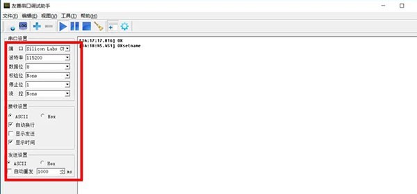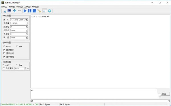 2启动对应的串口调试工具后,选择并开启指定的COM端口,接着输入AT指令并发送。若设备连接状态正常且硬件无故障,系统将通过蓝牙串口返回“OK”的响应信息。